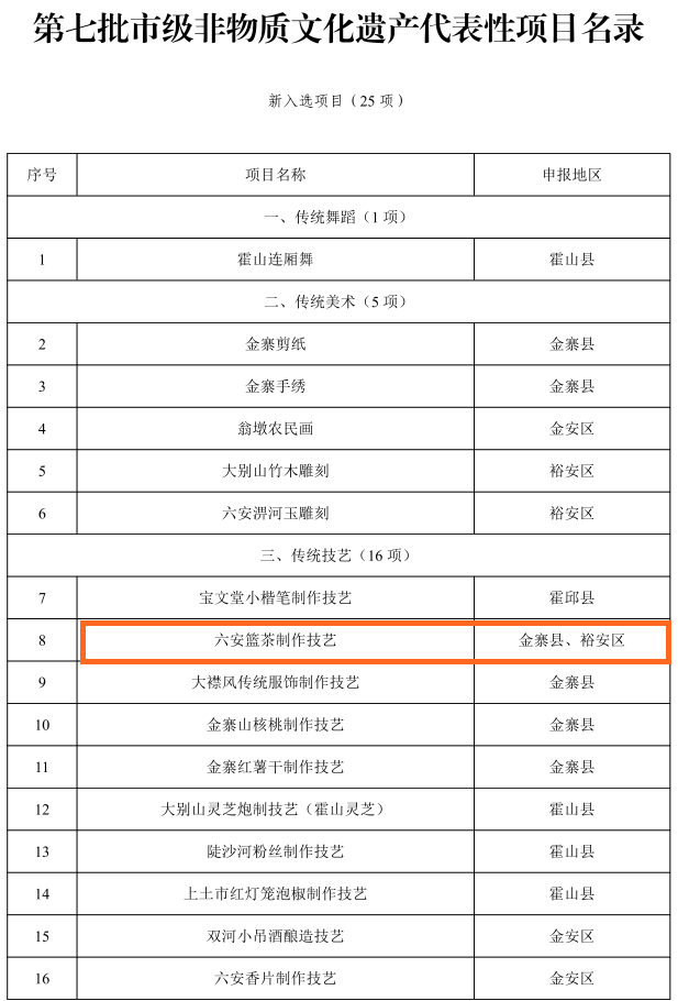 祝贺六安篮茶制作技艺入选六安市第七批市级非物质文化遗产代表性项目名录!